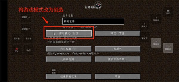 3、选择游戏模式:创造