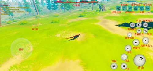 4、下图是各按键功能介绍,开始属于你的恐龙生存之旅吧!(建议使用加速器,不然会很卡)