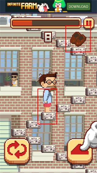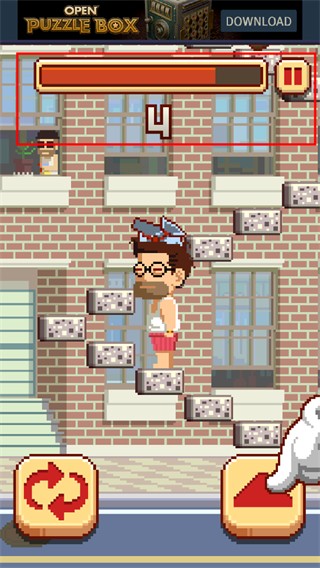5、游戏玩法虽然简单,但是游戏速度会随着攀爬的高度越来越快,给玩家的反应时间越来越少,非常具有挑战性,快来下载体验吧!