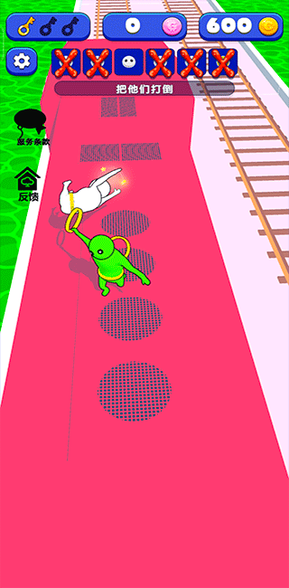 3、游戏中你需要打倒敌方人物,然后拖拽它将它丢出去(拖拽它之后可以多转几圈利用惯性将它丢出去哦);