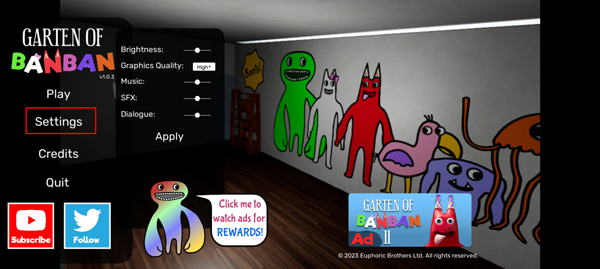 2、首先可以点击settings打开设置,调整游戏画质,音效等;