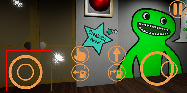 4、游戏采用横屏操作,手机屏幕右侧是移动方向的操作,手指点击则是互动功能。