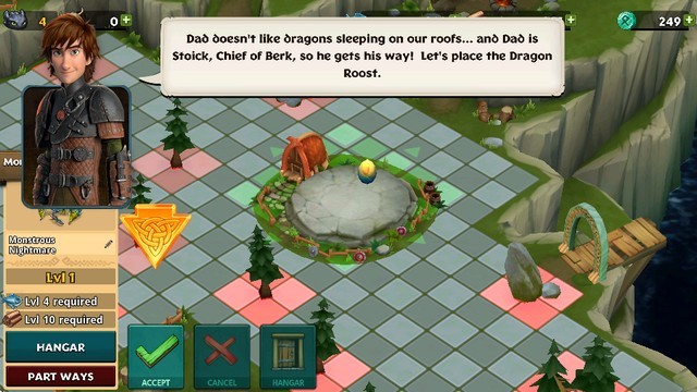 3. 除了龙,你还可以通过完成任务获得相应的物质奖励。你也可以通过消除树木来获得少量的木材。有时,无牙的人会带回来一些鱼和木头当他们出去。请注意,鱼和木材不能无限制地收集,因为这受到仓库大小的限制。