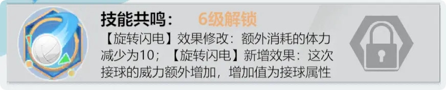 扣球技能的体力消耗减少10%,强攻扣球时,该球员进攻技巧增加6%~10%;