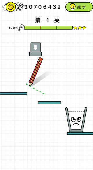 1、游戏玩起来还是比较轻松简单的,玩家只需要控制好画笔进行绘画,并且让液体能够顺利的流进水杯中,从而让里面的形象微笑,即闯关完成。