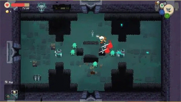 4、击杀地牢的魔物或者打开箱子会掉落物品,走上去会自动收集,掉到深远的物品就无法获取了。右侧显示背包的容量,背包满了就无法再捡东西了。