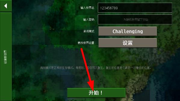 5、创建世界后点击开始;