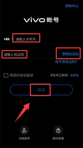 2、输入手机号码获取验证码并输入然后登录。