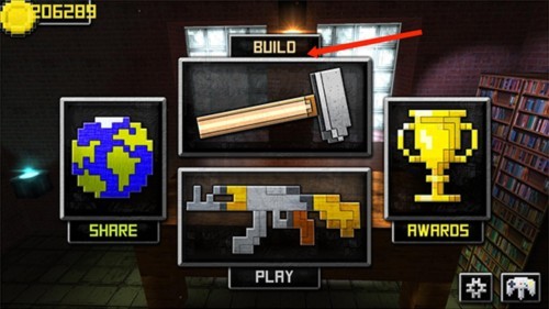 1. 通过像素块自由构建枪支。你也可以参加多人射击比赛与其他玩家。