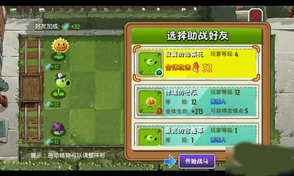 植物在开抽僵尸之前,玩家还可以通过借助好友的力量,在战前对植物们属性进行加成,所以说好的队友不可缺少哇!