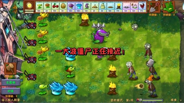 3、当有僵尸出现后,我们可以种植一些攻击型植物进行防御。