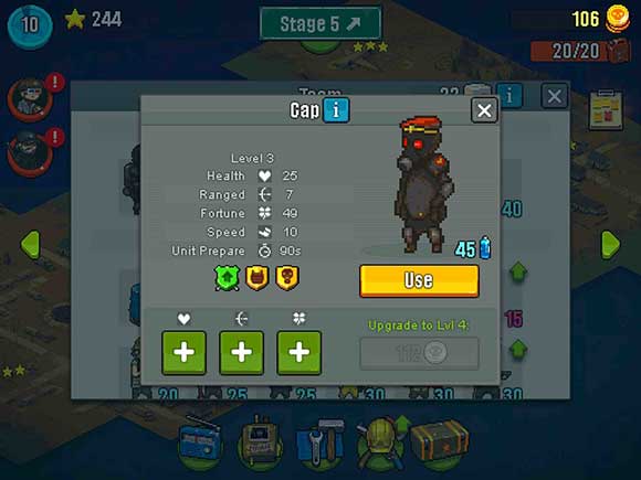 3. 熟悉各种角色的能力,做出合理的角色选择,协助来袭的僵尸,简单易学的游戏操作为玩家带来独特有趣的休闲冒险。