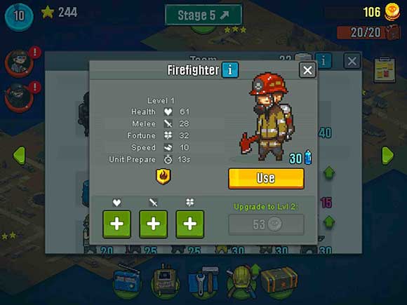 玩家在这个游戏当中,你就必须要去成功的打败所有的僵尸群,不择一切的手段与僵尸进行斗争,越过所有的障碍物,召唤自己的勇士团队,使用相对应的策略,合理的去消灭不同的僵尸,从而收集更多的物品,赢得更多的经验值来提升自己的实力,感兴趣的小伙伴们就一定不要错过,在这里你就可以不断的去进行探索,获得更多的道具以及武器。