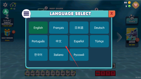 2. 各种鲨鱼类型可以解锁,选择你最喜欢的强大的鲨鱼,开始狩猎。