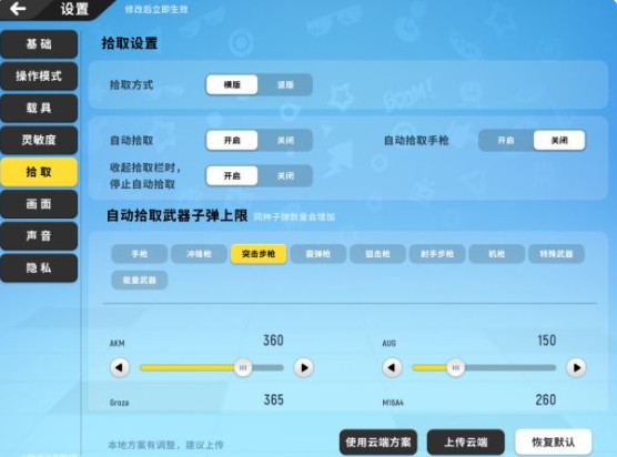 自动拾取各类物资数量设置(达到设置数值,将不再自动拾取该物品)