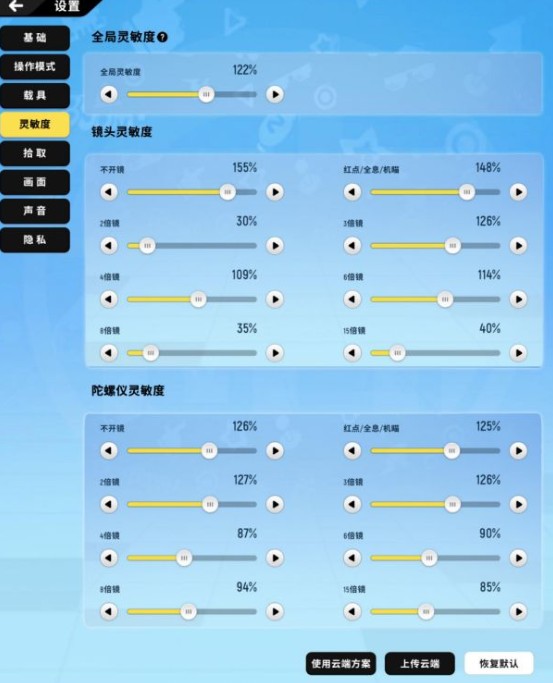 提供三种灵敏度调整全局灵敏度:可调节所有灵敏度数值(当需要同时调整所有灵敏度时使用)