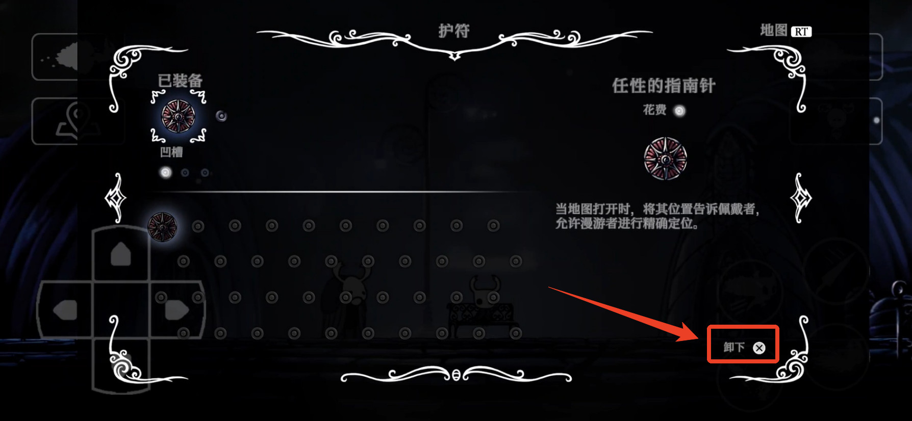 1、首先在空洞骑士移植版我们需要找到长椅,出现【休息】这两个字后在长椅面前点击向上的方向键就可以坐在长椅上了。