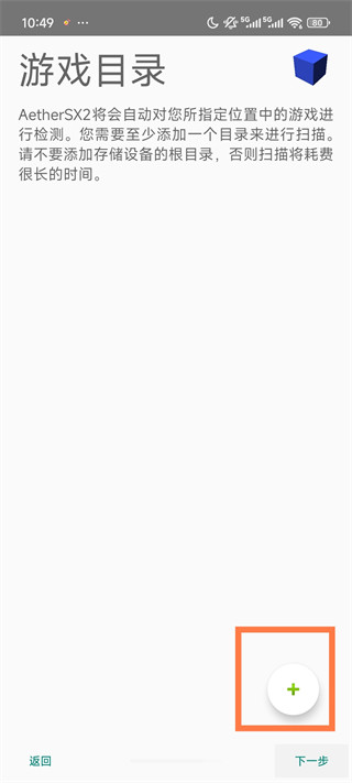 3、进入游戏目录后,点击右下角的【+】按钮