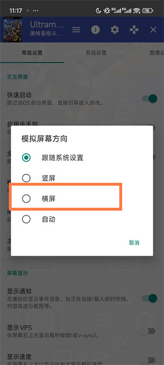 10、找到模拟屏幕方向,找到横屏即可