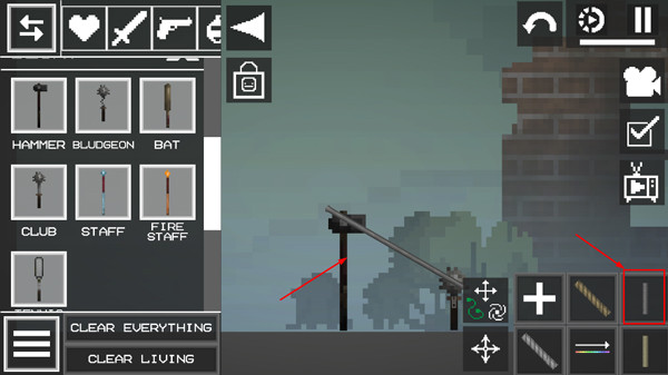 2、进入游戏如图,点击左上角菜单按钮,添加两个物品在地上。