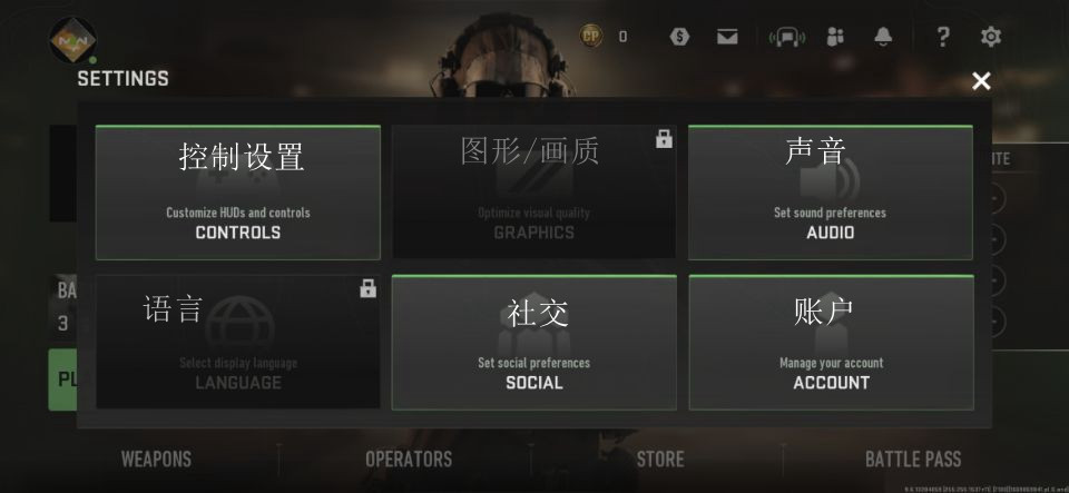 4、设置界面 (按键设置、控制设置、社交设置、音量等)