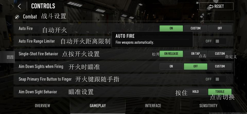 控制设置:自动开火、跳伞、按键和灵敏度等就在这里设置哦。