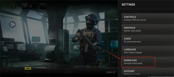 1、打开使命召唤战区手机版,游戏需加速器启动,第一次进入玩家还需下载较大的数据资源文件;