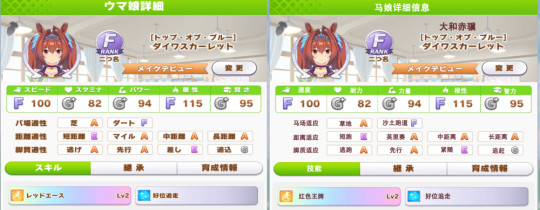 Ps:五大属性值越搞越好,P卡星级的马娘提升会增加属性值。