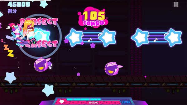 等待音符进入判定区域,直接撞击即可加分,可获得200分。