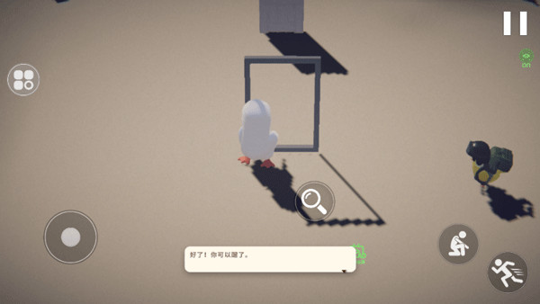5、正式进入游戏中左边轮盘可以控制方向,右边按钮有蹲下、疾跑等。