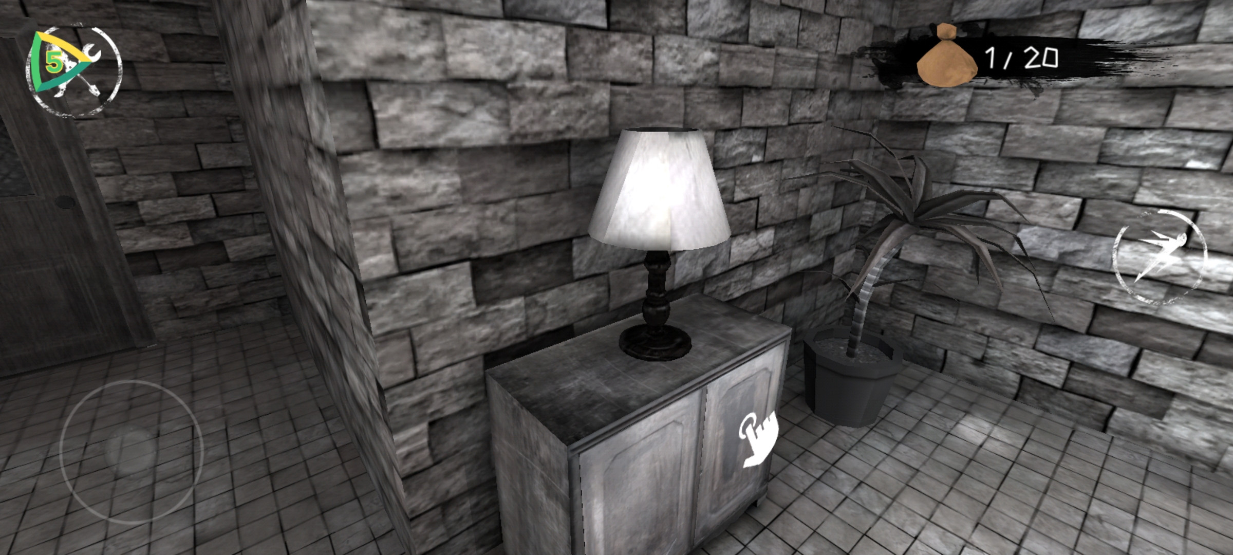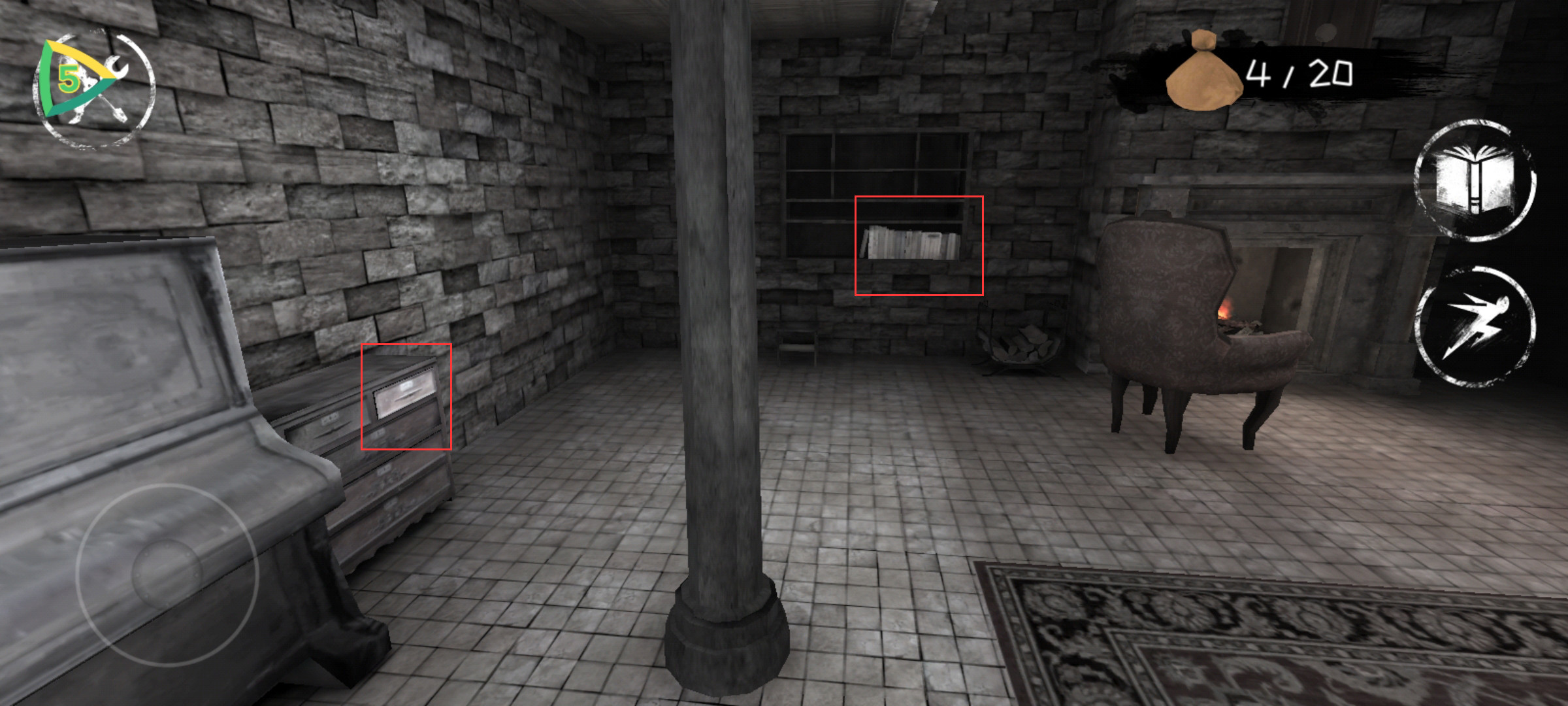 2、做完这一些后我们使用眼睛观察女鬼的位置,等女鬼进入地下室的时候,我们就到楼上去,在二楼时玩家们总共大概可以搜集到十八个钱袋和五个左右的眼睛,接着使用眼睛,等鬼到到地下室的时候我们回到开始的客厅,趁鬼上楼我们就去地下室。
