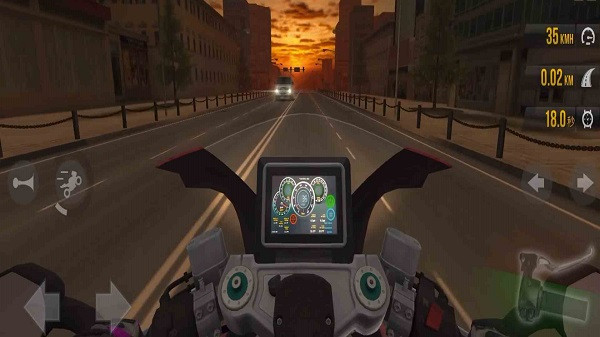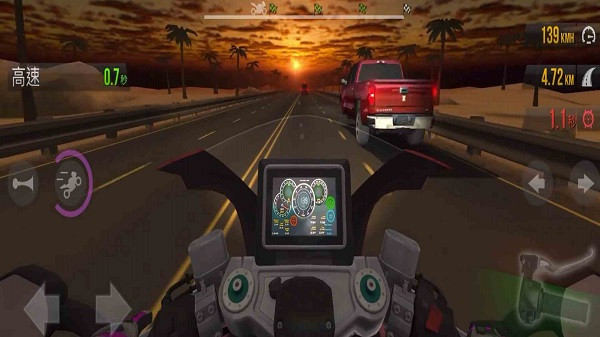 1、终极摩托的操控非常简单,滑动屏幕控制方向,左右的按钮分别是刹车和油门。