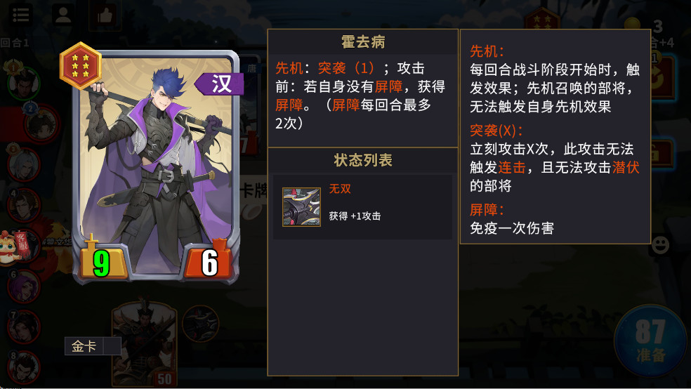 2、部将卡有两个重要属性,攻击力和生命值
