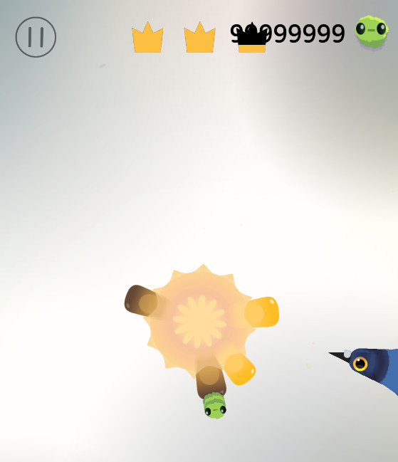 3、点击屏幕可以让鸽子开始吃玉米粒,注意上方的时间。皇冠为时间流逝,争取在结束的时候获得三个皇冠。