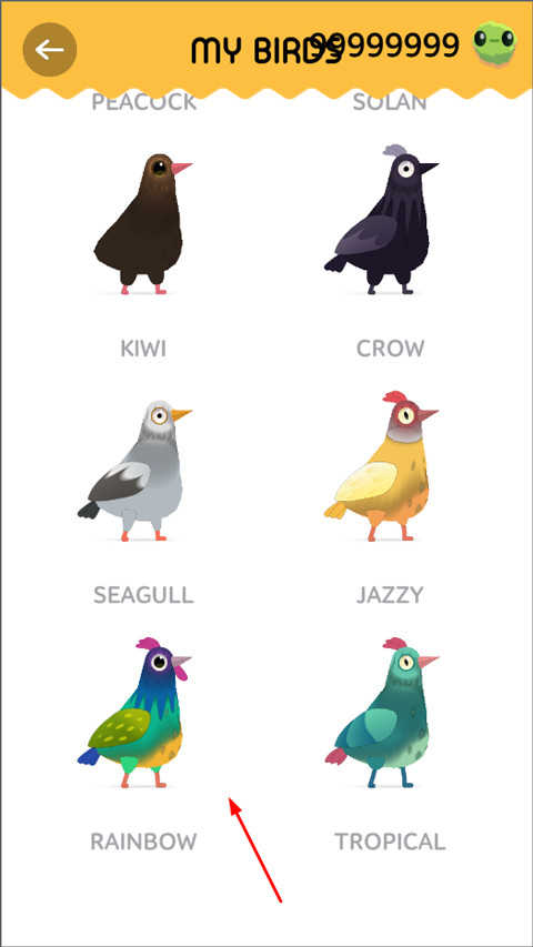 1、打开疯狂的鸽子全皮肤版,进入后点击右下方“三只鸽子”的图标;