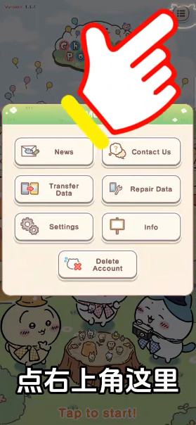 1、进入口袋吉伊卡哇国际服游戏后,点击主界面右上角的三个横杠图标。