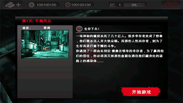 1、打开死亡扳机汉化版游戏,我们可以从第一天的任务开始游戏。