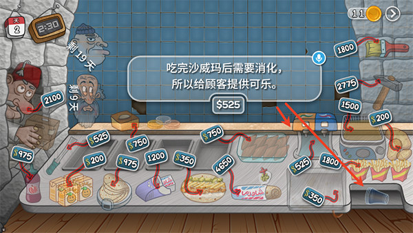 8、左上角的倒计时结束后即可查看一天的经营情况。