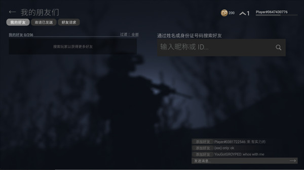 2、在“我的朋友们”界面的搜索框中,输入好友的ID或昵称,点击搜索后发送添加请求,等待好友通过验证,即可完成添加。