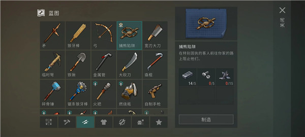 1、在地球末日生存2026主界面的蓝图做【捕熊陷阱】。