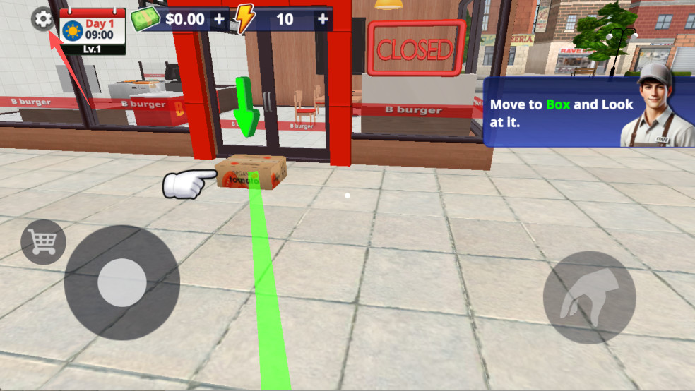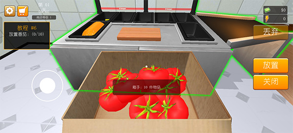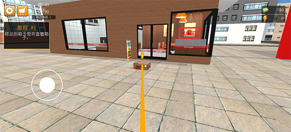 1、进入汉堡模拟器游戏内我们先来熟悉操作,然后根据提示前往箱子这里。