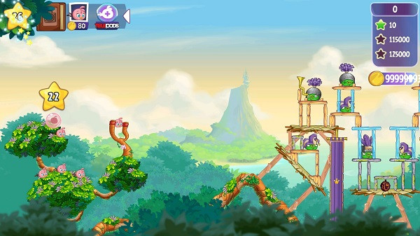 1、愤怒的小鸟思黛拉含有超过120 个关卡!在黄金岛丛林的树冠上一路弹射!