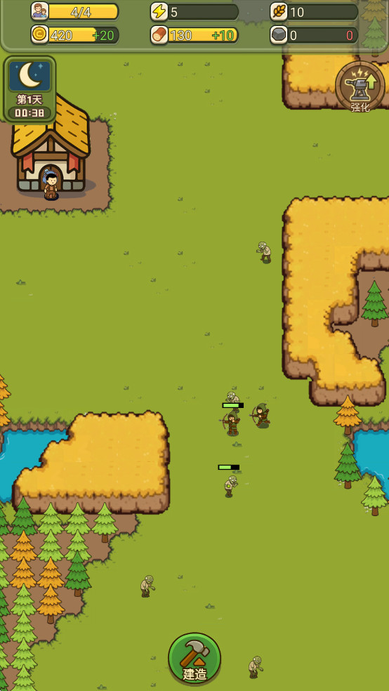 建立兵营后可招募战士,不同兵种擅长近战、远程或支援。战斗中点击屏幕即可指挥小队移动至指定区域,士兵会自动攻击范围内敌人,实现轻度即时战术操作。