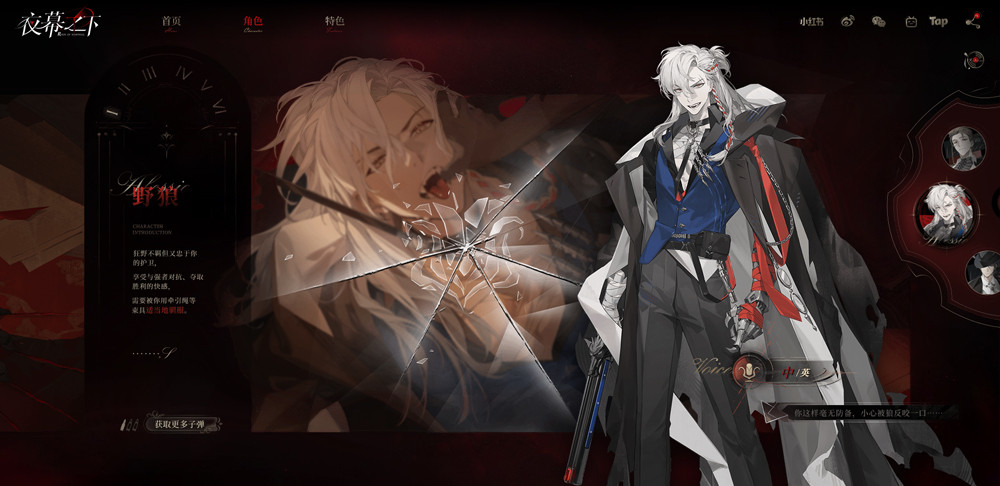下城区的统治者,性情暴戾的实干派。他的占有欲毫不掩饰,在相互探寻与博弈中,你可以选择抽身离开,但他恐怕不会停下。
