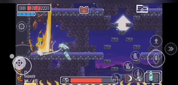 3、游戏采用了横版移动操作,屏幕左边轮盘控制角色移动,右边则为攻击、跳跃、冲刺等键位。