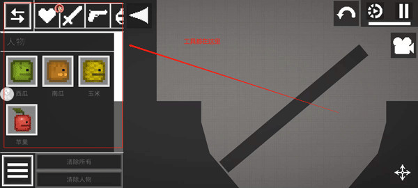 4、点击左上方由四个正方形组成的工具栏可以调出所有的道具