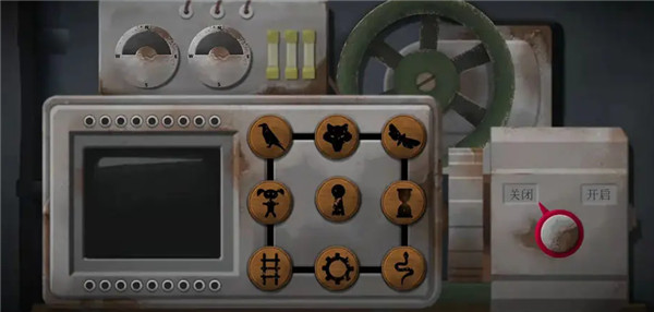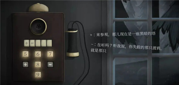 22、第三章时间来到1937年,第一个场景变了,所以我们不需要去看时间,注意:不要随意点击灯泡!!!来到钟表店,虽然是关灯状态,但是我们在第二章有了钥匙,可以随意进出。这次玩家一和玩家二的场景一致,进入钟表店后向下滑动,看到一台发电机,左侧的显示屏旁边有九个按键,游戏将它们从1~9依次编号,无论如何变换位置,1~9的位置是不变的,所以当它每次转动后,每次的1都不是一个按键。右侧开始后,玩家一率先有提示,之后便是玩家二有提示,一共18次,每人9次。