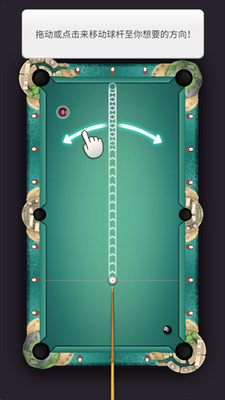 1、无限八球台球之王通过滑动屏幕来移动球杆的方向,亦可以通过直接点击来控制球杆的方向。
