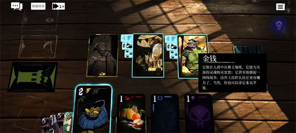 接下来介绍游戏的战斗界面!在预言奇谈中除了用物理方式解决敌人还能靠各种方式解决掉危机!正所谓有钱能使鬼推磨…!