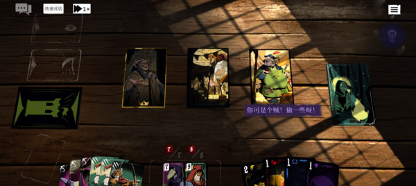 同时当玩家需要某张技能卡却没有的时候可以将一张技能卡拖到对应角色的头上来交换技能卡!虽然这样做会消耗一张技能卡并且可能消耗一个食物!